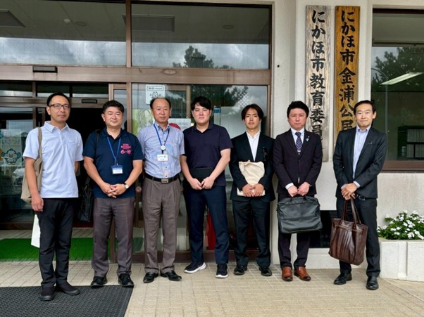 (にかほ市金浦公民館前にて職員の方々と)