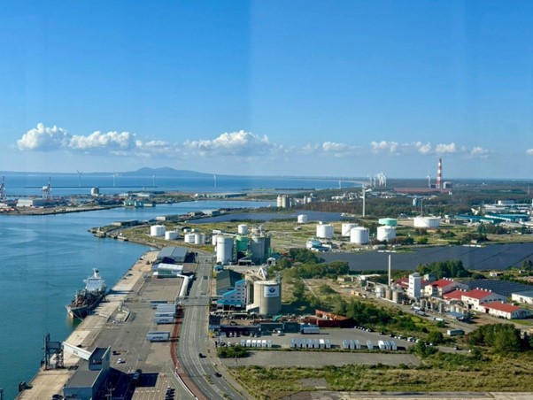 昼食の後に、私たちは秋田港を視察に訪れました。秋田港は、県内でも大規模に洋上風力発電施設、並びに太陽光発電施設が稼働している場所になります。特に、洋上風力発電事業に関しては、文献等で知識として理解するのと、実際に目で見るのとでは受け止め方が大きく異なるものであると実感しました。その光景は壮大であると同時に、前日にヒアリングをした方々の、再エネ施設が住居に隣接していることの影響について考えさせられる機会となりました。